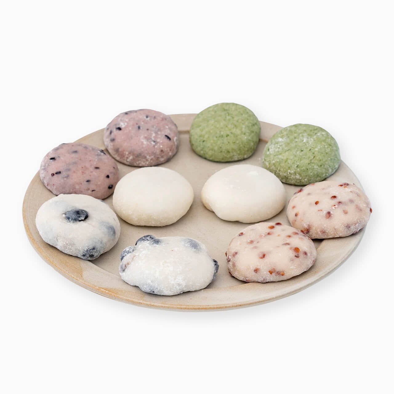 合計10個になるように、ご希望の味と個数をお知らせください。(例:白×5個・黒豆×5個)